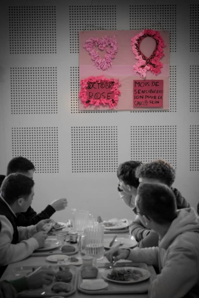 Enfin, l’équipe cuisine s’est mobilisée pour réaliser un repas rose : pâtes rose, dessert à la fraise tagada, entrées rose…